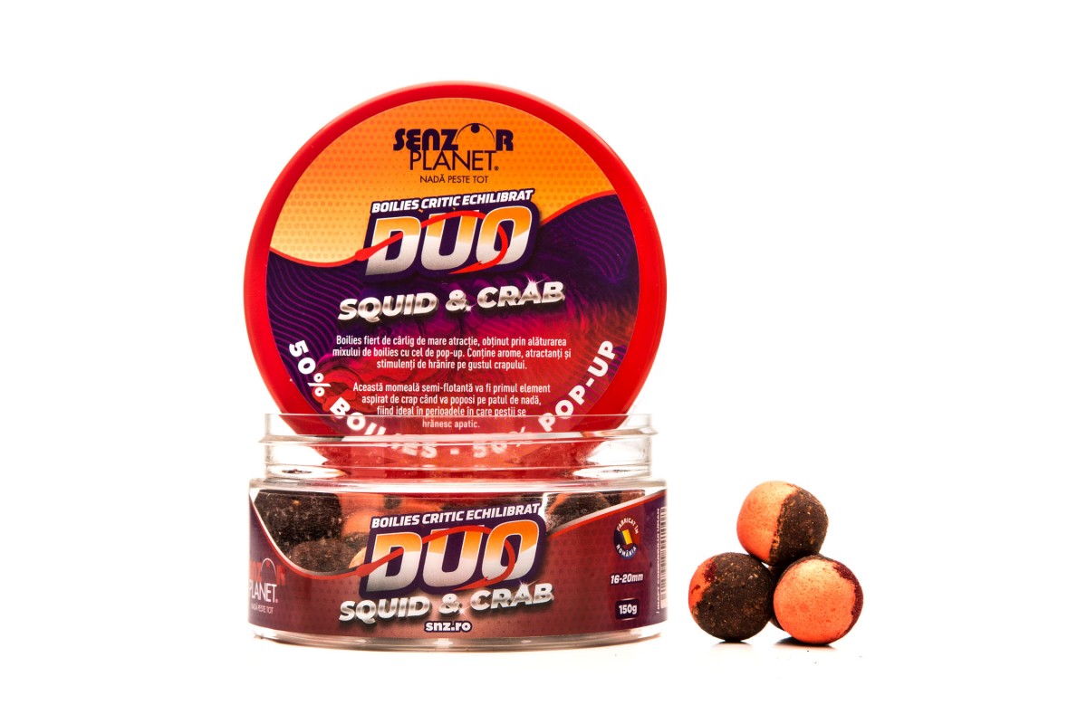 Бойлы нового поколения, разработаны с целью обеспечения карпа всем необходимым для его питания. В их состав входят специально подобранные измельчённые специи, витамины и минералы. Особая структура бойлов DUO - половина тонущая, половина плавающая, делают их своебразным суспендером. Яркая половина бойла плавающая, она всегда направлена вверх, тёмная половина тонущая.