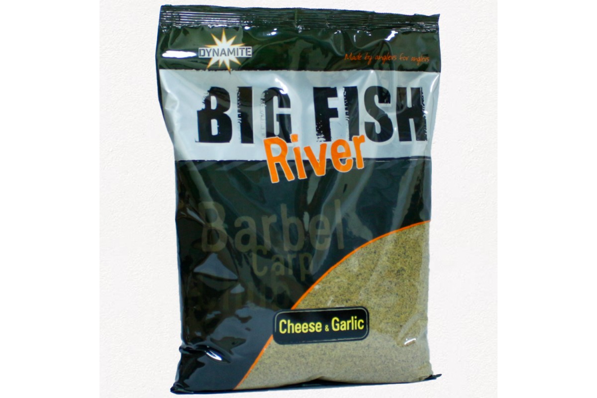Dynamite Baits Big Fish River Groundbait Cheese & Garlic - сыпучая прикормка с ароматом сыра и чеснока для ловли в условиях среднего и быстрого течения на реке.