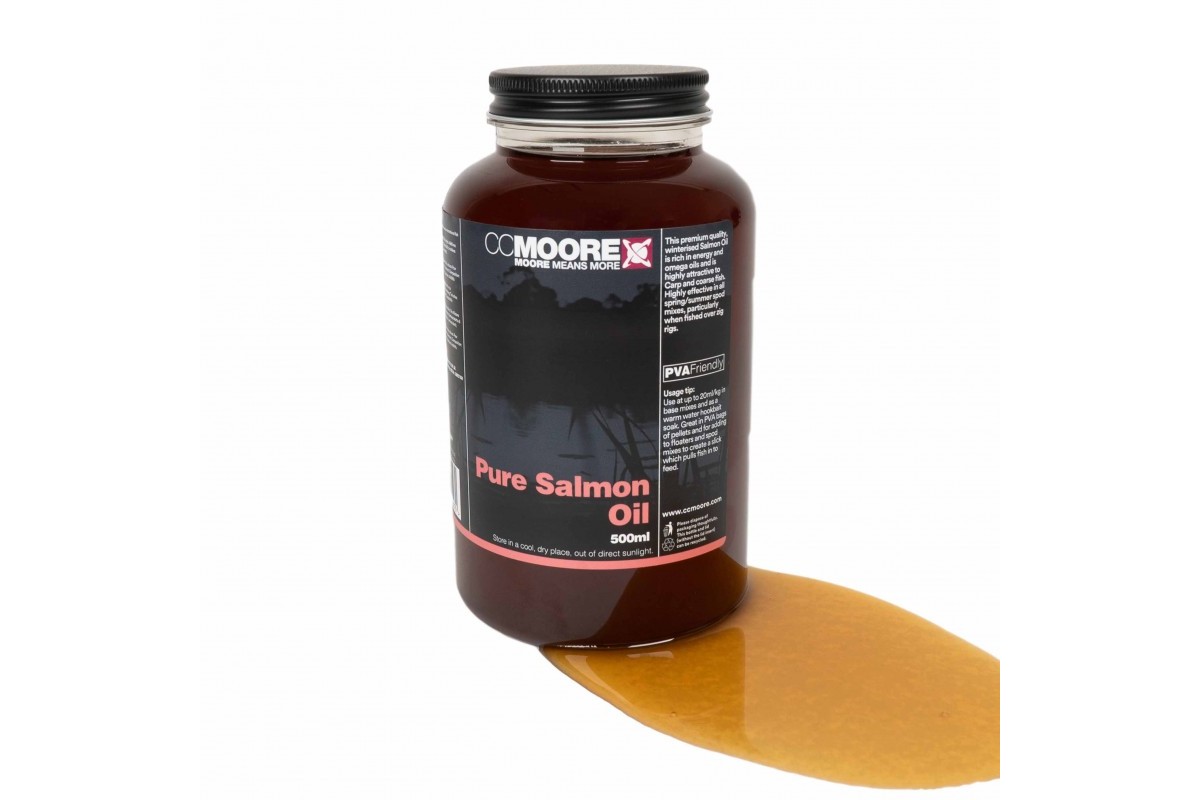 п»їPure Salmon Oil - 100% натуральное масло лосося. Это масло было произведено специально для холодной воды. Будучи признанным поставщиком Омега 3 и шести масел, масло лосося также является концентрированным источником энергии с мощными антиоксидантными и натуральными привлекательными свойствами, которая повышает привлекательность приманки и обладает значительной питательной ценностью для карпа. Не растворяет ПВА, отлично подходит для использования со стик-миксами и ПВА-пакетами. Является хорошим дополнением к пеллетсу и спод-миксам. Характеристики: - Объём: 500 мл. - Рекомендуемый уровень включения: 20-30 мл / 1 кг. Рекомендации: Совершенно новый облик приобретают пеллетс CSL и Marine Amino, когда пропитаны маслом лосося Pure Salmon Oil. Если их замочить в масле за 24 часа до начала сессии, приманка будет стимулировать рыбу кормиться более эффективно. Во время холодных месяцев производитель рекомендует использовать с Super Cherry Amino Compound, Minamino или CSL Corn Steep Liquor именно масло лосося, поскольку эффективность любого другого масла снижается при холодных температурах воды. CCMoore & Co Ltd - английская компания с давней историей, насчитывающей уже более 150 лет. Компания занимается питанием для животных и мукомольно-крупяными изделиями. Богатый опыт в области питания в животноводческой сфере и страсть к рыбалке подтолкнул компанию к развитию направления питания для донных рыб. Компания особенно славится своим пеллетсом и ликвидами, но также производит очень качественные и уловистые бойлы.