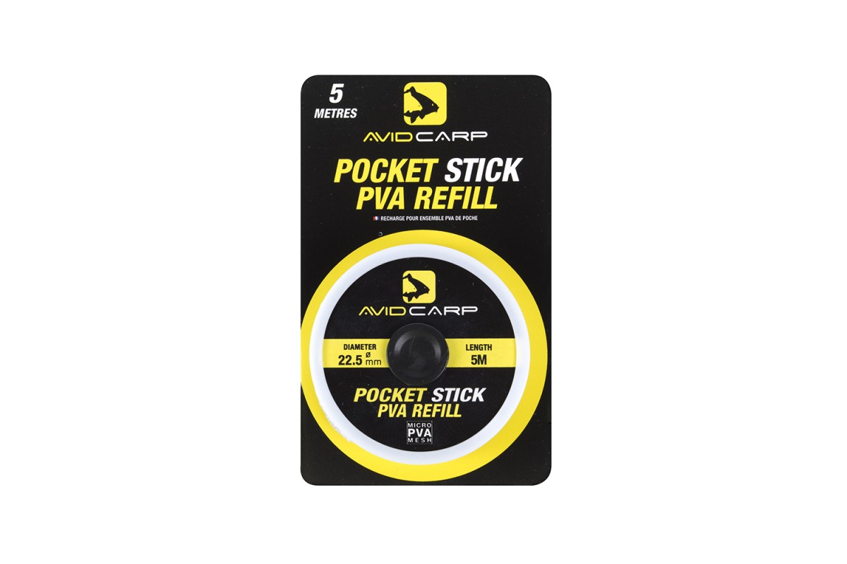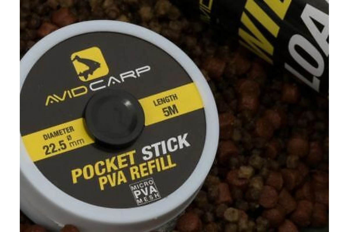 AVID CARP Pocket Stick - растворимая ПВА сетка для системы AVID CARP PVA Pocket Stick System. ПВА сетка работает круглый год и позволяет использовать небольшие приманки, такие как личинки, гранулы и сыпучие прикормки.